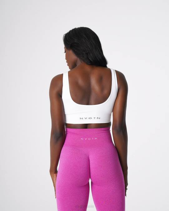 Elevate your essentials wardrobe with this soft and stretchy seamless knit bra. The Elevate Seamless Bra features a deep V neckline, open back, and flattering ribbed detailing on the waistband. This bra is an absolute staple piece as it offers the versatility to be worn as a top at the gym, or paired under your favorite NVGTN hoodie for a comfortable lifestyle look.